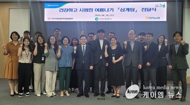 (케이엠뉴스) 인천광역시는 26일 NH농협은행 인천본부에서 인천시 관내에 있는 식사배달 급식소에 삼계탕 500개를 전달하는 ‘어르신 건강하고 시원한 여름나기 삼계탕 나눔 행사’를 개최했다고 밝혔다.