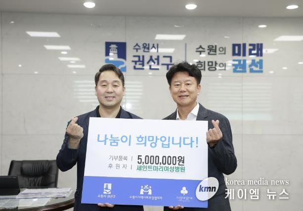 (케이엠뉴스) 수원시 권선구는 지난 19일 관내 세인트마리 여성병원에서 후원금 5백만 원을 기탁했다고 밝혔다.