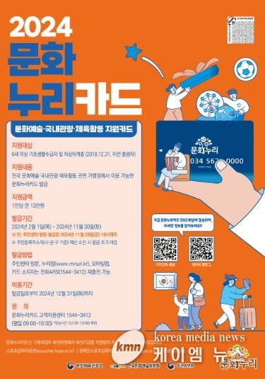 시 관계자는 “기간 내 문화누리카드를 사용하지 못해 지원금이 전액 소멸된 사례가 매년 접수되고 있는 만큼, 2024년 12월 31일까지 문화누리카드 지원금 13만 원을 반드시 사용해 주시길 바란다”라고 밝혔다.