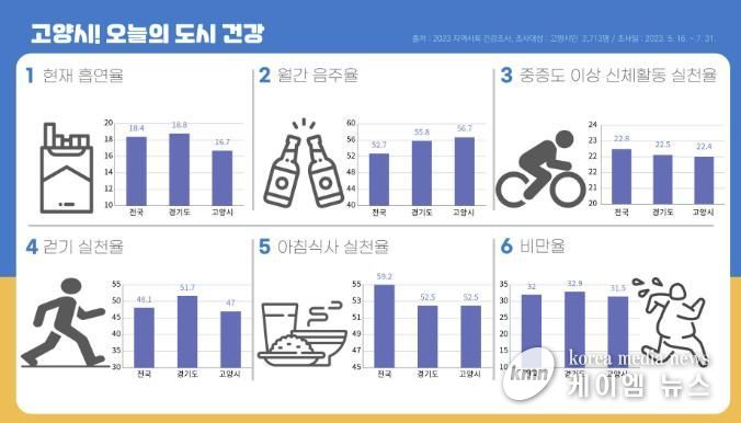 시는 지역의 흡연율, 음주율, 걷기실천, 비만율 등 다양한 건강지표를 정보그림(인포그래픽)으로 제작하여 시 누리집에 게재하여 시민들과 정보를 공유했다. 내년에는 고양연구원과 함께 ‘건강도시 조성 타당성 연구’를 실시하여 발전적 방향을 전문가와 논의하고 건강도시 계획을 고도화할 계획이다.