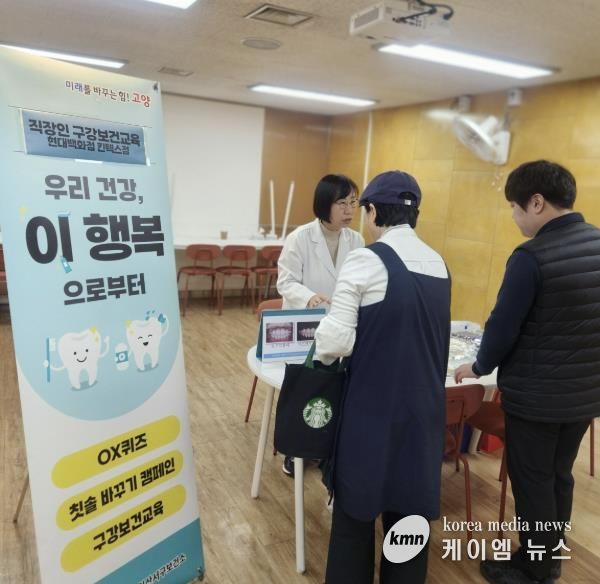 (케이엠뉴스) 고양특례시 일산서구보건소는 지난 12월 9일부터 3일간 지하3층 세미나실에서 현대백화점 킨텍스점 직원 대상 구강건강관리 및 보건교육을 진행했다.