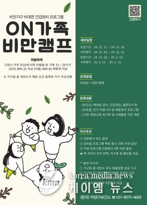 (케이엠뉴스) 고양특례시 덕양구보건소는 지역주민의 비만 관리를 위한 ‘ON가족 비만캠프’참가 가구를 18일까지 모집한다고 12일 밝혔다.