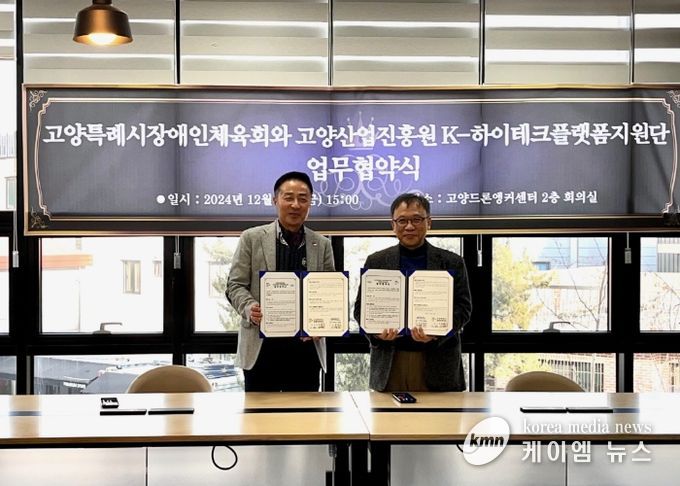 (케이엠뉴스) 고양산업진흥원 K-하이테크 플랫폼 지원단이 지난 13일 고양드론앵커센터 회의실에서 고양시 장애인체육회와 업무협약을 체결하고 드론 체험 캠프를 개최했다.
