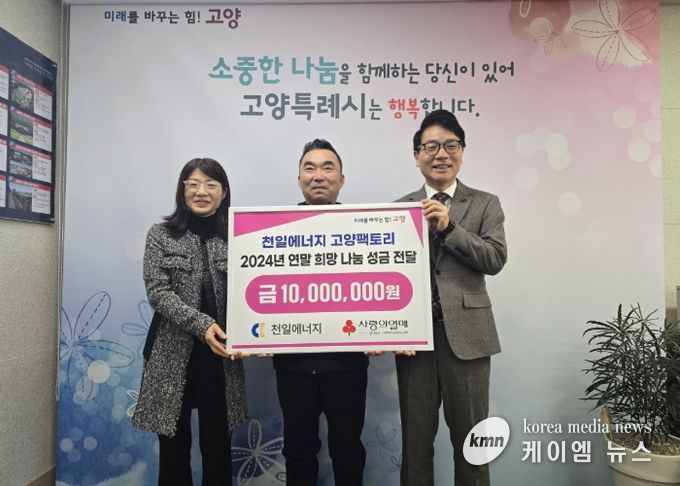 (케이엠뉴스) 고양특례시는 지난 16일, 천일에너지 고양팩토리로부터 연말을 맞이해고양시 취약계층을 위한 성금 1천만 원을 전달받았다고 밝혔다.