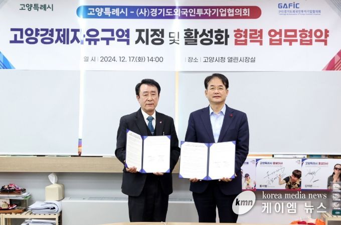 (케이엠뉴스) 고양특례시는 지난 17일 시청 열린시장실에서 고양경제자유구역 지정 및 투자유치 활성화 협력을 위해 경기도외국인투자기업협의회(GAFIC)와 업무협약을 체결했다고 밝혔다.