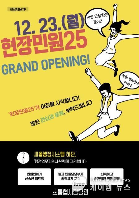 (케이엠뉴스) 고양특례시가 지난 23일, 새올 행정 내부망에 ‘현장민원25 시스템’을 정식 개통하고 운영을 시작했다고 밝혔다.