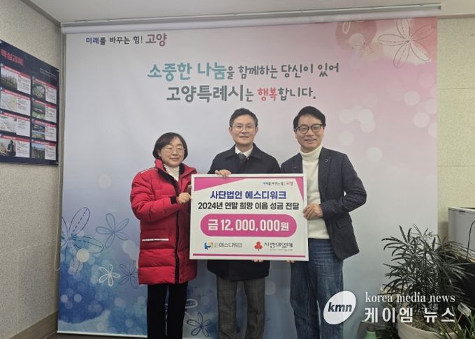 (케이엠뉴스) 고양특례시는 지난 24일, (사)에스디워크로부터 연말을 맞이해 고양시의 어려운 이웃을 위한 성금 1천 2백만 원을 전달받았다고 밝혔다.