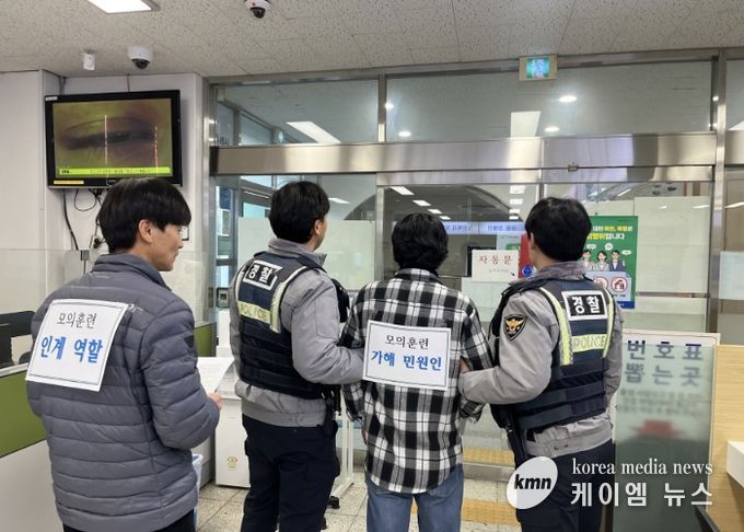(케이엠뉴스) 고양특례시 일산서구 덕이동은 지난 23일 악성 민원인의 폭언·폭행 등 특이 민원 발생에 대비하고 민원인과 담당 공무원의 안전을 확보하기 위해 행정복지센터 민원실에서 비상상황 대비 모의훈련을 실시했다.