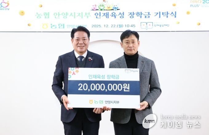 (케이엠뉴스) 안양시 인재육성재단이 지난 22일 농협 안양시지부로부터 인재육성을 위한 장학금 2천만 원을 기탁받았다고 23일 밝혔다.