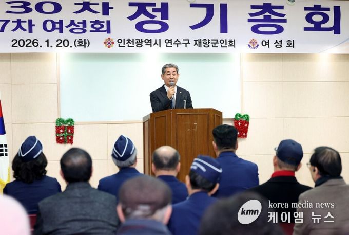(케이엠뉴스) 인천광역시의회 정해권 의장(국·연수구1)은 20일 인천시 연수구 보훈회관에서 열린 ‘2026년 제30차 연수구 재향군인회 및 제27차 연수구 재향군인회 여성회 정기총회’에 참석해 회원들을 격려했다.