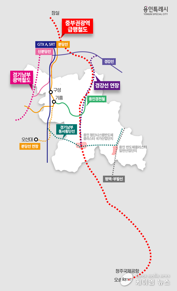이 시장은 또 ‘제4차 국가철도망 구축계획’에 반영된 분당선 연장(기흥역~오산대역)‘ 사업의 예비타당성 조사 면제 등 조속한 추진도 강조했다. 용인에 반도체 프로젝트가 진행되면서 관련 기업 입주 등으로 인구가 늘고 있고 기흥역에서 삼성전자 기흥캠퍼스, 화성 동탄, 오산대를 연결하는 이 사업의 실현이 더 이상 지연되어서는 안된다는 취지의 말을 이날 했다.
