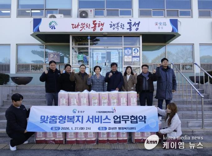 (케이엠뉴스) 홍성군은 지난 27일 (사)두리장애인복지회가 결성면행정복지센터와 취약계층 복지 지원 업무 협약식을 맺고 2026년 한 해 동안 결성면행정복지센터에 화장지 24롤 20개를 지속적으로 지원하기로 하며, 지역사회를 위한 나눔 활동에 동참했다고 밝혔다.