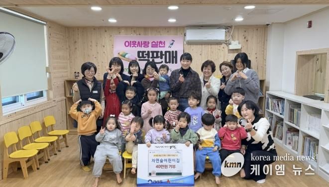이번 성금은 1월 26일부터 27일까지 이틀간 강상면 다목적복지회관 1층에서 자연숲어린이집 원아와 학부모들이 직접 참여한 ‘이웃사랑 떡 판매 행사’를 통해 마련됐다.
