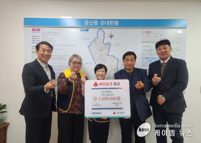 (케이엠뉴스) 고양특례시 일산동구 풍산동은 지난 28일 ㈜대덕운수가 취약계층 지원을 위한 성금 100만 원을 기부했다고 밝혔다.