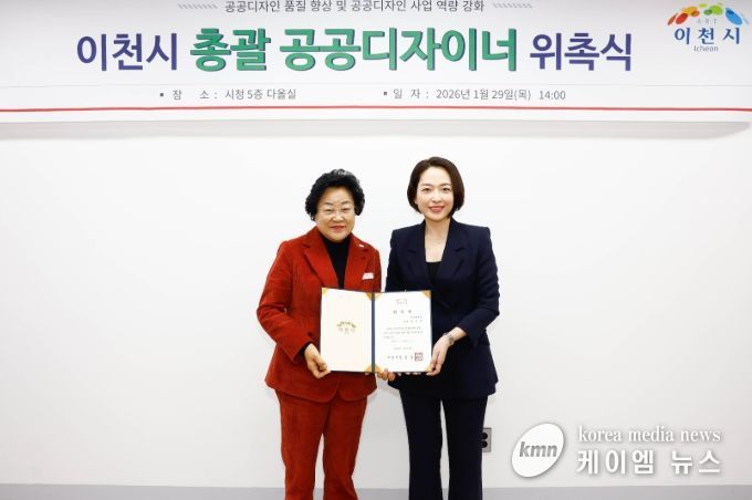 (케이엠뉴스) 이천시는 디자인 행정의 체계적 관리와 공공디자인의 질적 향상을 위해 총괄 공공디자이너 제도를 도입하고, 지난 29일 시청 다올실에서 인하대학교 권은선 교수를 이천시 제1대 총괄 공공디자이너로 위촉했다고 밝혔다.