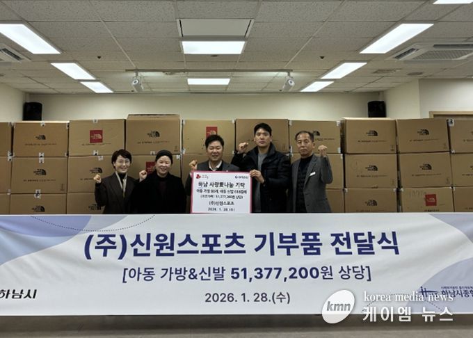 (케이엠뉴스) 하남시는 지난 28일, 스포츠 유통회사인 ㈜신원스포츠가 신학기를 맞아 지역 내 취약계층 아동을 위한 키즈 가방과 신발 등 5,100만원 상당의 키즈 용품을 하남시종합사회복지관에 기탁했다고 밝혔다.