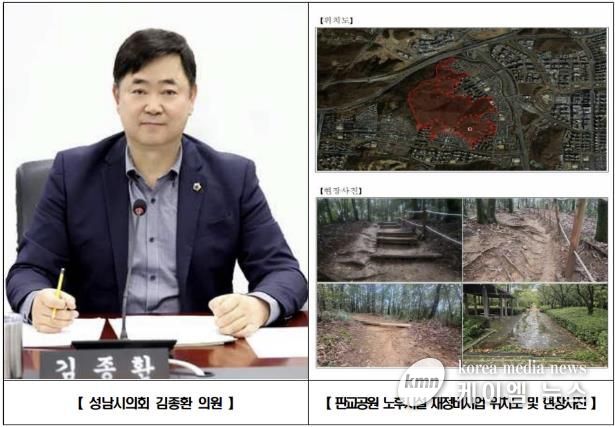 (케이엠뉴스) 성남시의회 국민의힘 김종환 의원(판교·백현·운중·대장동, 예산결산특별위원장)은 분당구 판교동 판교공원 일원 노후 산책로와 바닥포장 등을 정비하는 재정비공사가 본격 추진됨을 밝혔다.