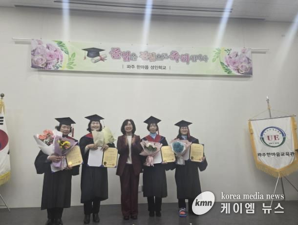 (케이엠뉴스) 파주교육지원청은 2월 5일, 금촌1동 행복복지센터 대강당에서 열린 학력인정 문해교육 중학 3단계 과정 졸업식에 참석했다.
