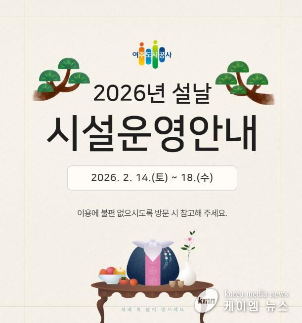 (케이엠뉴스) 여주도시공사가 다가오는 2026년 설 연휴를 맞아 시민과 귀성객들이 안전하고 편안한 명절을 보낼 수 있도록 주요 시설 운영시간 조정 및 특별 서비스를 시행한다고 밝혔다.