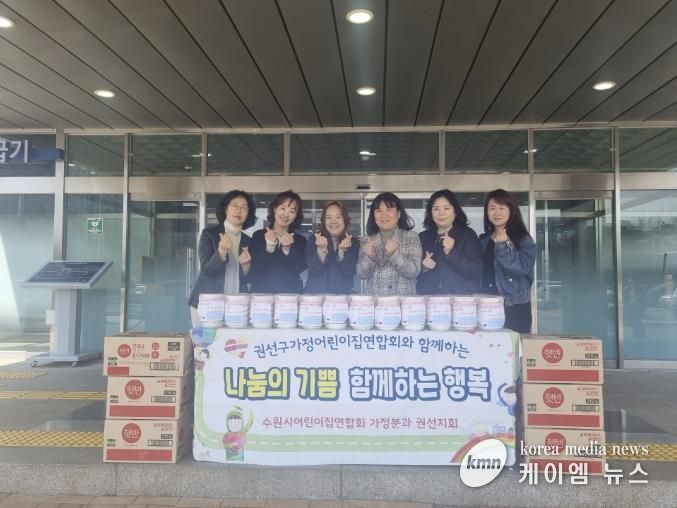 이번 후원은 '나눔의 기쁨, 함께하는 행복'이라는 뜻을 모은 권선구 가정어린이집 원장들의 자발적인 참여로 이루어졌다.