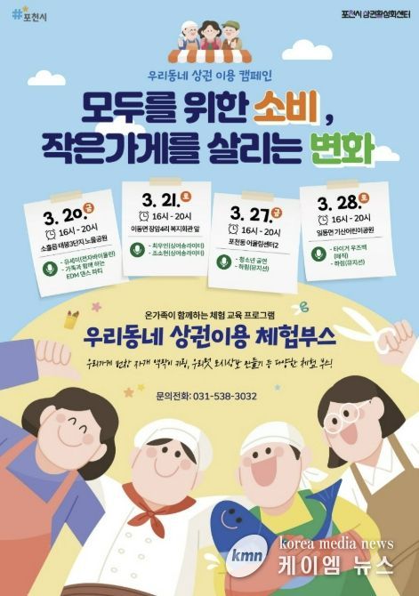 (케이엠뉴스) 포천시는 오는 20일부터 지역경제 활성화를 위한 ‘우리동네 상권이용 캠페인’을 개최한다.