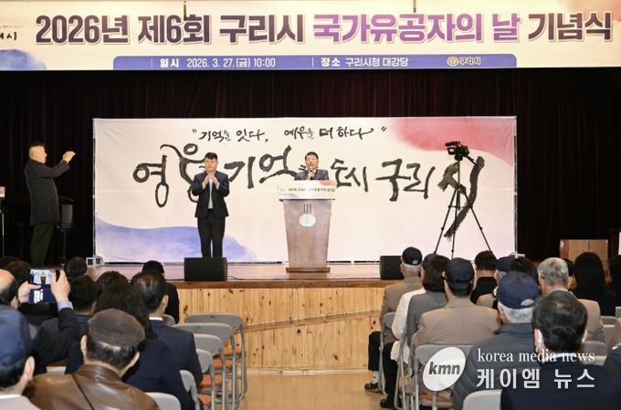 (케이엠뉴스) 구리시는 지난 3월 27일 오전 10시 구리시청 대강당에서 국가유공자 및 내빈 약 400명이 참석한 가운데‘2026년 제6회 구리시 국가유공자의 날 기념행사’를 개최했다.