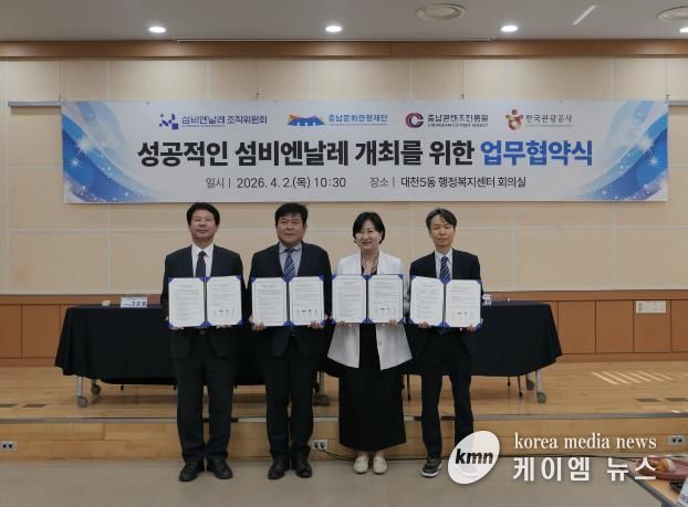 (케이엠뉴스) (재)섬비엔날레조직위원회는 '제1회 섬비엔날레'의 성공적인 개최를 위해 충남문화관광재단, 충남콘텐츠진흥원, 한국관광공사 대전충남지사와 4자 업무협약(MOU)을 체결했다고 밝혔다.