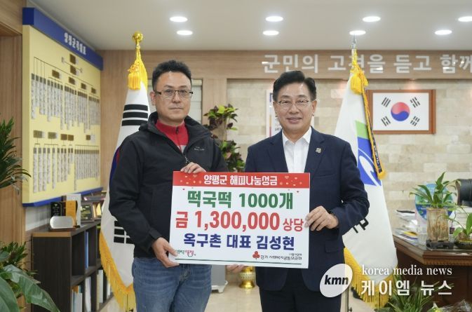 (케이엠뉴스) 양평군은 지난 1일 농업회사법인 ㈜옥구촌한우가 지역 내 취약계층을 위해 130만 원 상당의 떡국떡 1,000개를 기탁했다고 밝혔다.