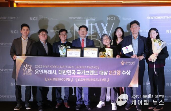 (케이엠뉴스) 용인특례시가 칸 국제광고제, 클리오광고제와 함께 세계 3대 광고제로 꼽히는 뉴욕페스티벌(NYF)이 주관하는 ‘2026 뉴욕페스티벌 대한민국-국가브랜드 대상’(NYF K-NBA)에서 도시브랜드(CI) 부문과 반도체산업 선도 도시 부문 1위로 선정됐다.