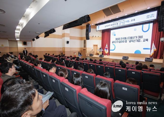 수원시가 2일 시청 대강당에서 ‘제9회 전국동시지방선거 대비 공직자가 알아야 할 공직선거법 교육’을 열었다. 송하경 팔달구 선거관리위원회 지도계장이 공직자들이 자주 묻는 내용을 중심으로 공직선거법을 설명했다.