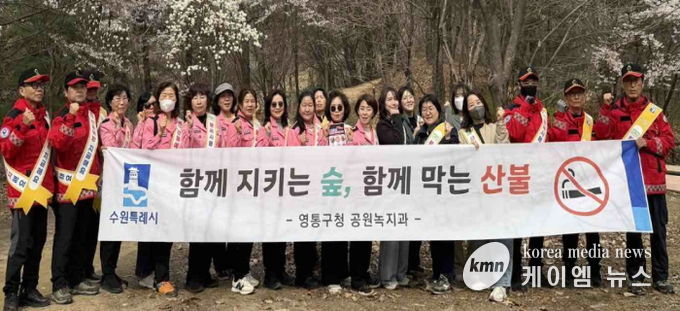(케이엠뉴스) 수원시 영통구는 지난 4월 3일 산불 발생 위험이 높은 청명·한식 기간을 맞아 등산객 이용이 많은 혜령공원 등산로에서 산불방지 캠페인을 실시했다.