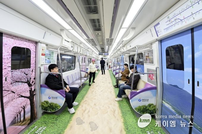 하남시는 벚꽃 개화기를 맞아 지하철 5호선 전동차 내부를 하남의 아름다운 명소로 가득 채운 ‘하남 풍경열차’를 선보이며 시민들의 일상에 따스한 온기를 더하고 있다.
