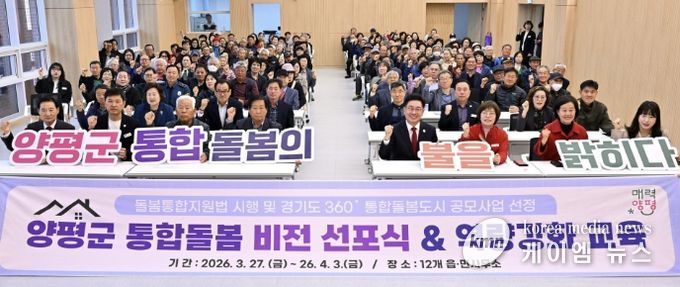 (케이엠뉴스) 양평군은 ‘의료·요양 등 지역 돌봄의 통합지원에 관한 법률’ 시행일인 지난달 27일 개군면을 시작으로 4월 3일까지 진행한 ‘양평군 통합돌봄 비전 선포식 및 역량 강화 교육’을 성황리에 마무리했다고 밝혔다.