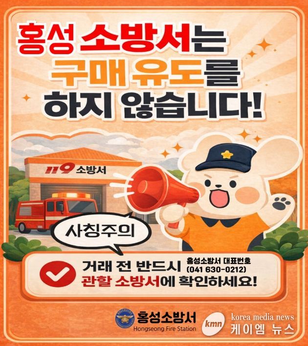 (케이엠뉴스) 홍성소방서는 최근 충청남도 내에서 소방기관을 사칭해 대형 소화기 구매를 강요하는 허위 공문 사례가 발생함에 따라 각별한 주의를 당부했다.
