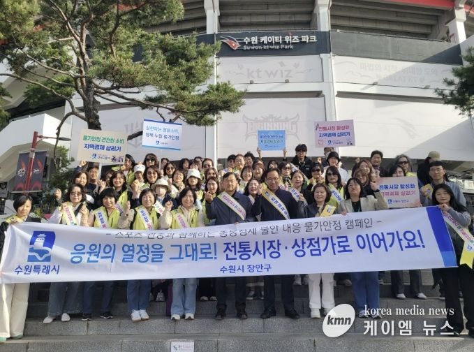 (케이엠뉴스) 수원시 장안구는 지난 22일, 수원KT위즈파크 일대에서 야구관중을 대상으로 지역경제 활성화를 위한 캠페인을 추진했다. 이번 캠페인에는 장안구청장을 비롯해 관계 공무원과 물가모니터요원 등 20여 명이 참여했다.