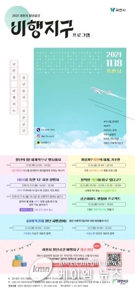 (케이엠뉴스) 과천시는 11월 18일에 문을 여는 과천시 청년공간 ‘비행지구’에서 청년대상 프로그램 참여자를 오는 28일 부터 모집한다고 밝혔다.