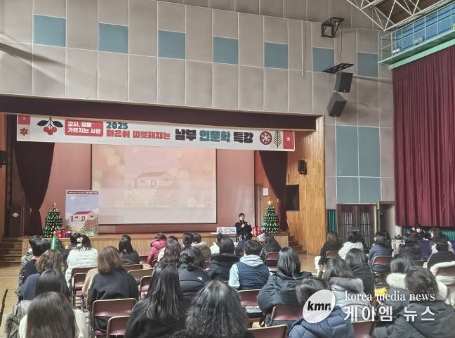 (케이엠뉴스) 인천남부교육지원청은 16일 인주중학교에서 관내 초·중·고 교사 100여 명을 대상으로 소설 『아버지의 해방일지』 저자 정지아 작가와 함께하는 교사 공감 프로그램을 운영했다.