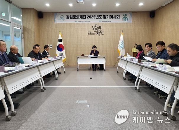 (케이엠뉴스) 강원문화재단은 올해 재단 운영의 성과를 되짚어 보고, 2026년도 사업계획 및 취업규칙 정비를 위한 제규정 개정안 등을 논의하는 2025년도 정기이사회를 17일 재단 회의실에서 개최했다.