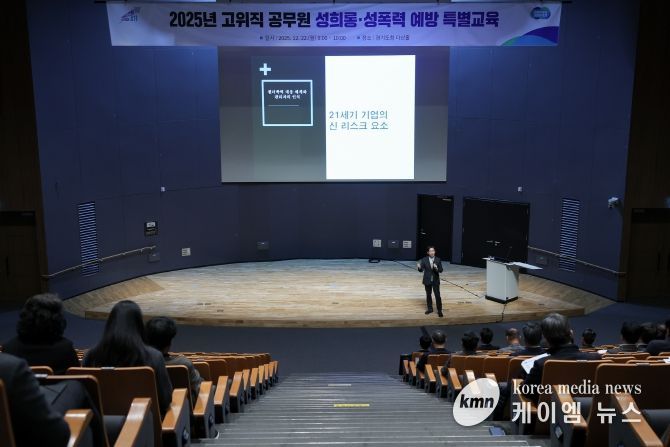 (케이엠뉴스) 경기도는 22일 경기도청 다산홀에서 김동연 경기도지사를 포함해 고위직 공무원 약 50명을 대상으로 ‘직장 내 성희롱·폭력 예방 특별교육’을 실시했다.