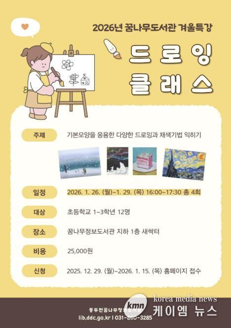 (케이엠뉴스) 동두천시 도서문화사업소 꿈나무정보도서관은 초등학생을 대상으로 한 2026년 겨울방학 특강 프로그램을 운영한다고 밝혔다.