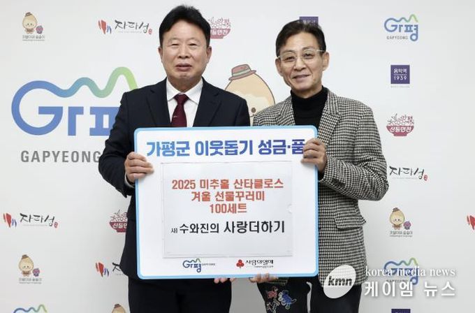 서태원 가평군수는 “매년 따뜻한 나눔을 실천하며 지역사회에 귀감이 되고 있는 사단법인 수와진의 사랑더하기에 깊이 감사드린다”며 “기탁해 주신 산타 꾸러미는 꼭 필요한 분들께 소중히 전달하겠다”고 밝혔다.