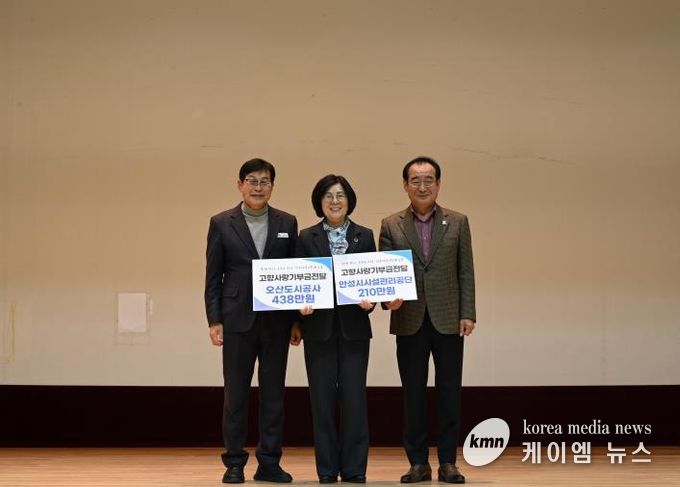 (케이엠뉴스) 안성시시설관리공단은 안성시와 오산시의 상생협력과 지역경제 활성화를 목적으로 안성시설관리공단과 오산도시공사가 중점적으로 추진한'고향사랑기부제 상호기부 전달식'을 개최했다고 밝혔다.