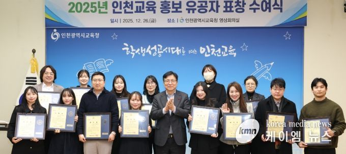 (케이엠뉴스) 인천광역시교육청은 한 해 동안 인천교육 현장의 생생한 모습을 홍보한 유공자들의 노고를 격려하는‘2025년 인천교육 홍보 유공자 표창 수여식’을 26일 개최했다.