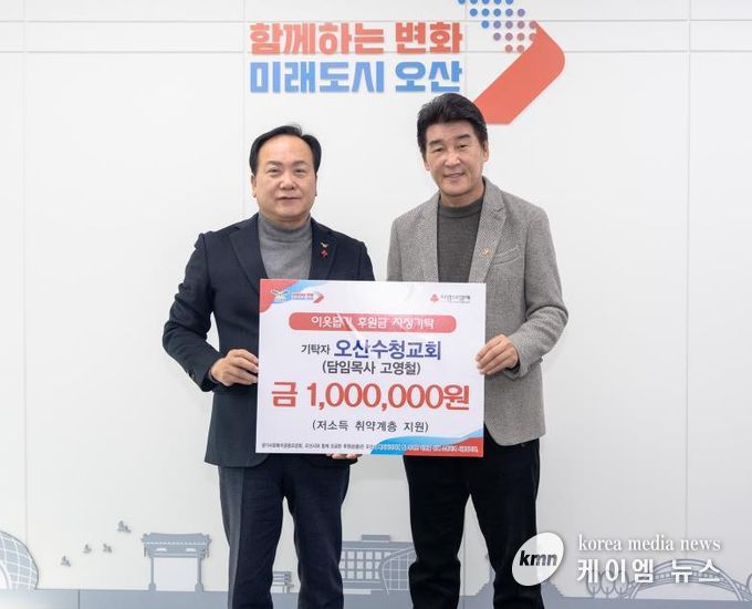 (케이엠뉴스) 오산시는 지난 26일 오산수청교회가 희망2026나눔캠페인에 동참해 관내 취약계층 지원을 위한 성금 100만 원을 기탁했다고 밝혔다.
