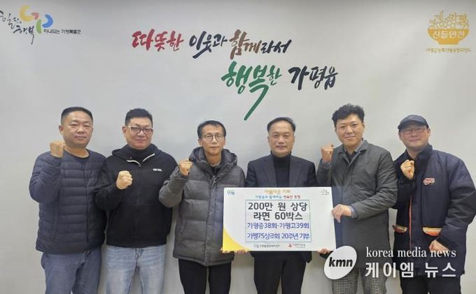 (케이엠뉴스) 가평75상조회는 최근 가평읍 행정복지센터를 방문해 이웃돕기 성품으로 200만 원 상당의 라면 60박스를 기탁했다.