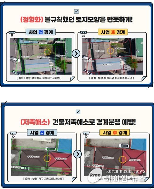 그 결과 ▲형상이 불규칙한 토지 2만 4,028필지를 반듯한 형태로 정형화했고 ▲건축물이 타인의 토지를 침범해 분쟁 소지가 있던 1만 1,474필지의 경계를 바로잡았다.