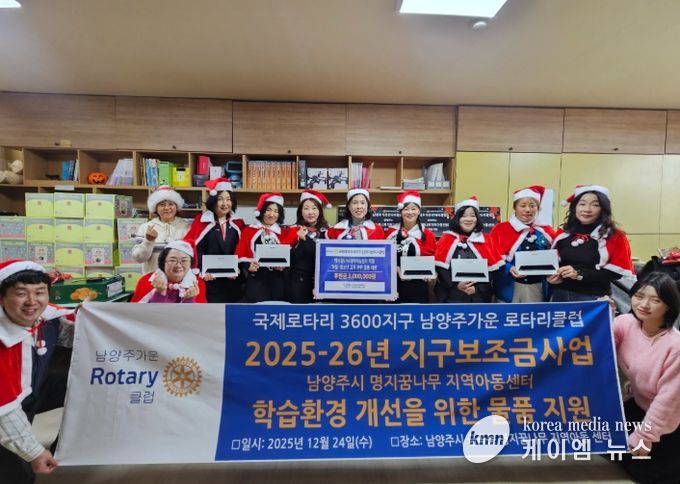 (케이엠뉴스) 남양주시는 지난 12월 24일 국제로타리3600지구 남양주가운로타리클럽이 남양주시 사회복지관 남부희망케어센터를 통해 후원금 300만 원을 기탁하고, 이를 활용해 마련한 교육 물품을 명지꿈나무지역아동센터에 전달했다고 밝혔다.