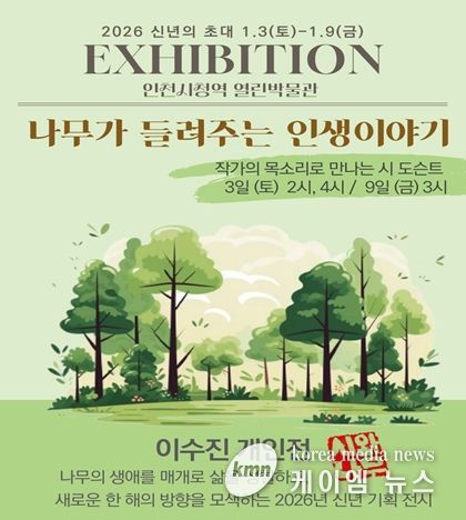 (케이엠뉴스) 인천광역시 시립박물관은 1월 3일부터 9일까지 인천지하철 1호선 인천시청역 내 ‘열린박물관’에서 대관전시 ‘나무가 들려주는 인생 이야기’개인작가 전시를 개최한다고 밝혔다.