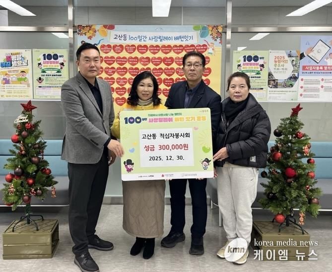 (케이엠뉴스) 의정부시 고산동주민센터는 12월 30일 고산동 적십자봉사회가 성금 30만 원을 기부하며 ‘100일간 사랑릴레이 배턴 잇기’에 동참했다고 밝혔다.
