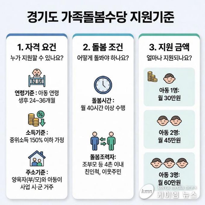 (케이엠뉴스) 경기도 가족돌봄수당 사업 참여 시군이 지난해 14개에서 올해 26개 시군으로 늘어남에 따라 더 많은 도민들이 돌봄사업 혜택을 받게 됐다.